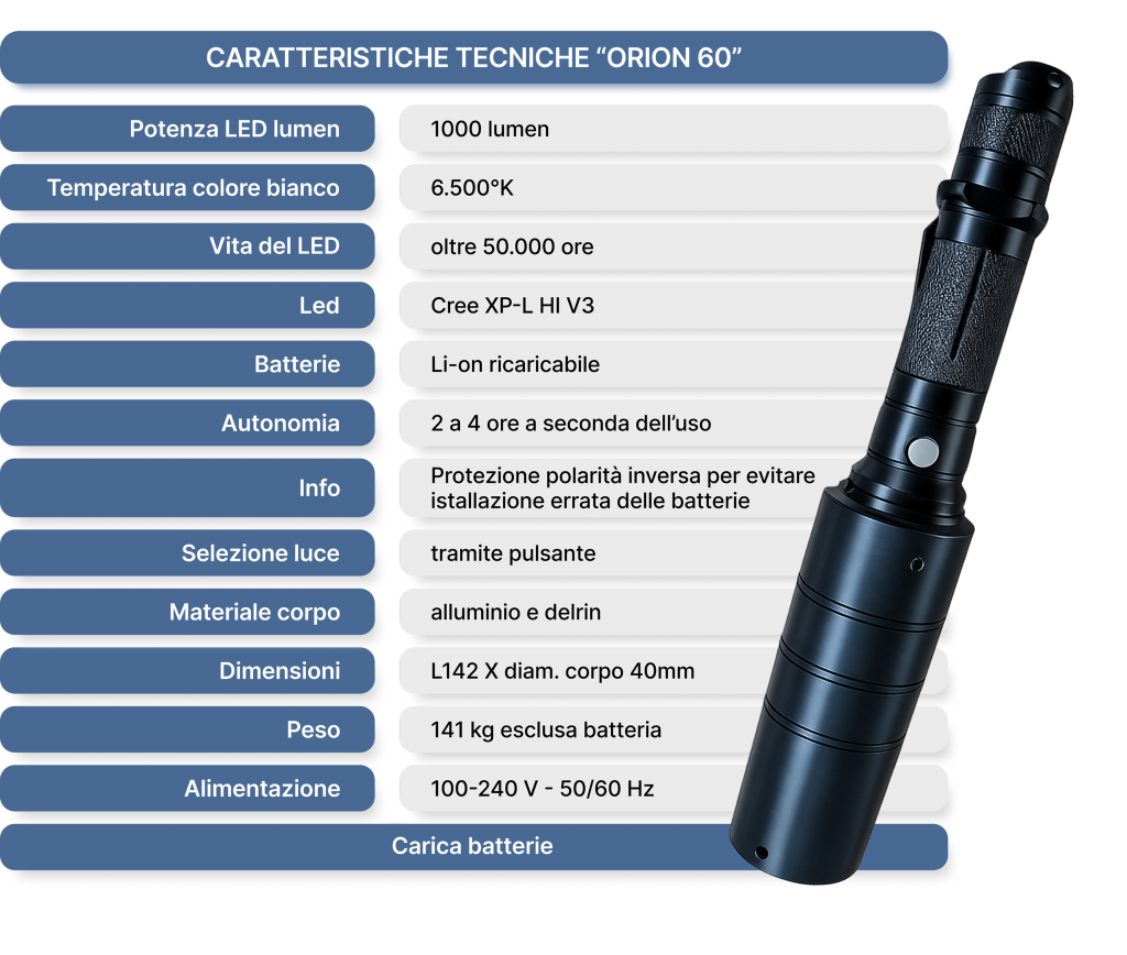 “ORION 60 ” TORCIA  LED LUCE BIANCA PORTATILE